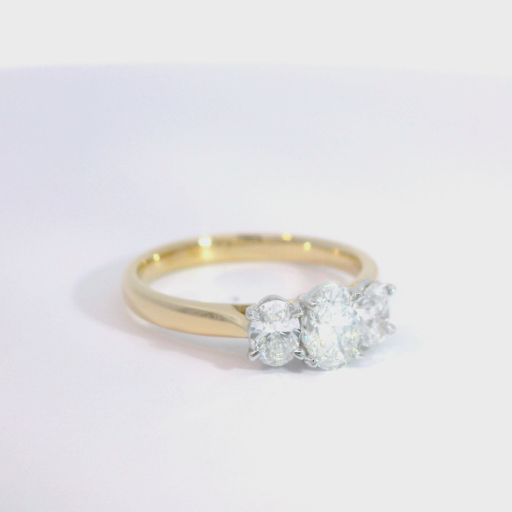 18 Carat Yellow Gold and Platinum Oval Diamond Trilogy Ring