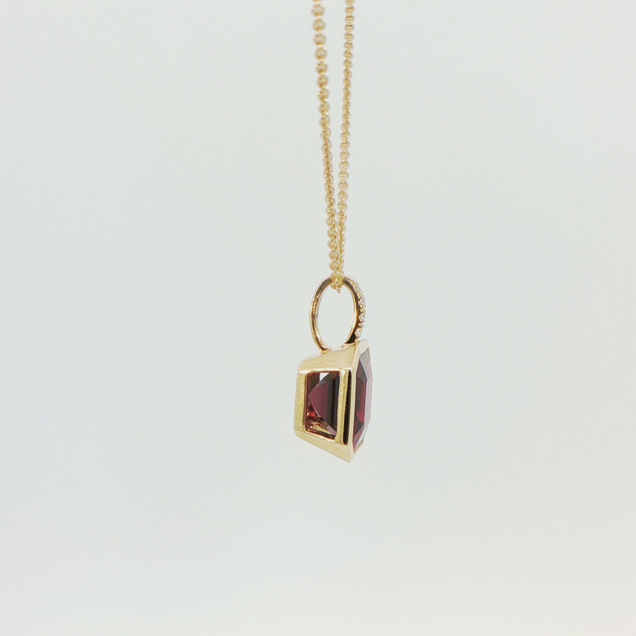 18 Carat Yellow Gold Garnet and Diamond Pendant on Chain