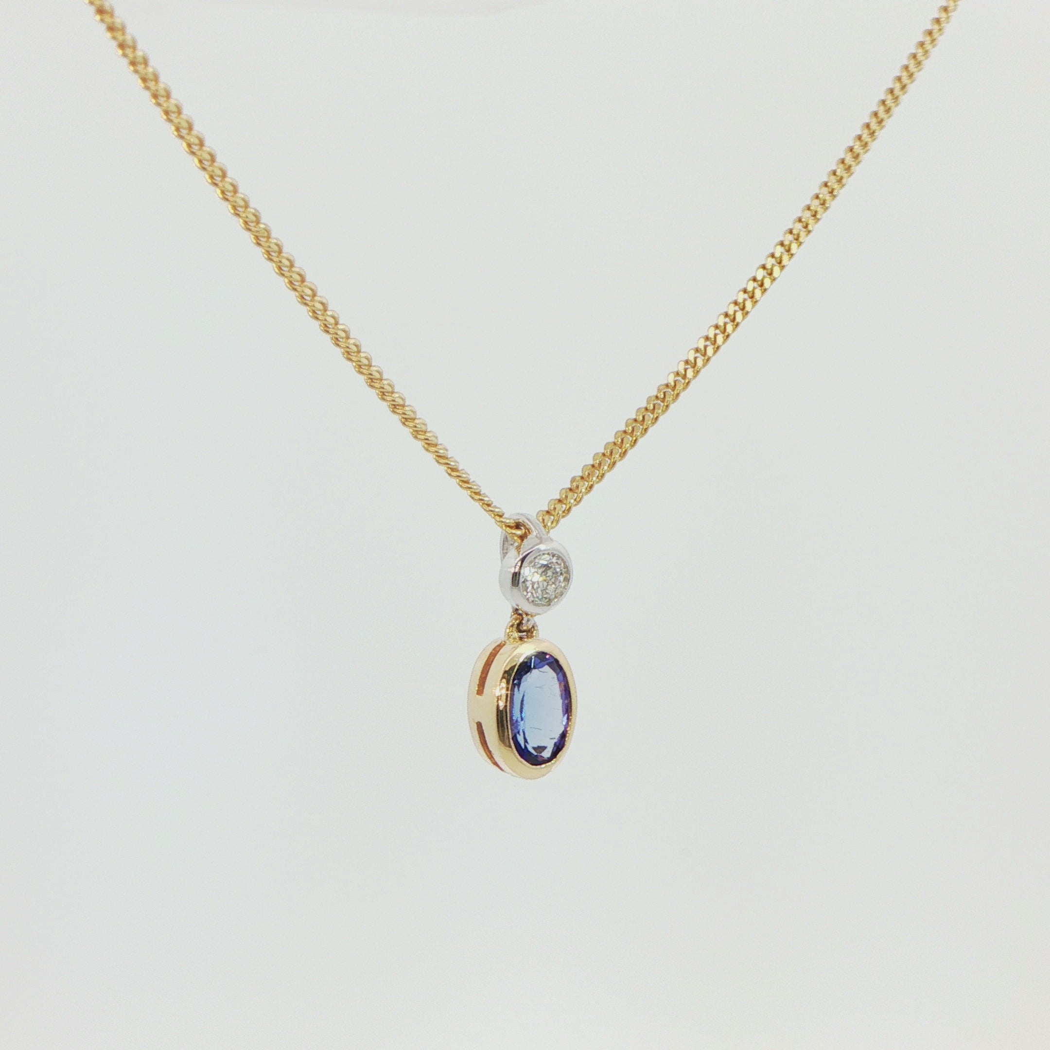 18 Carat Yellow and White Gold Tanzanite and Diamond Pendant on Chain