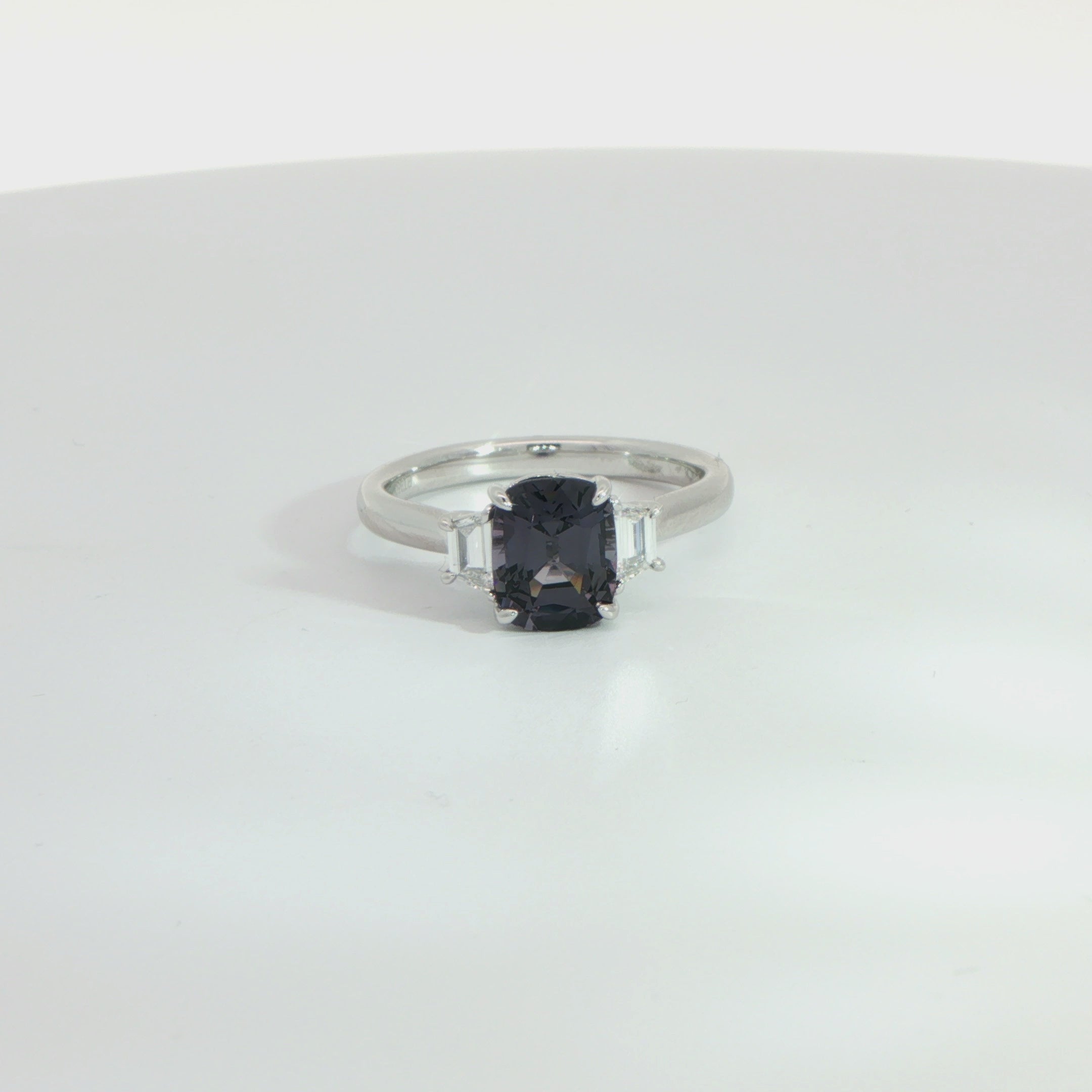 Platinum Spinel and Diamond Three Stone Ring