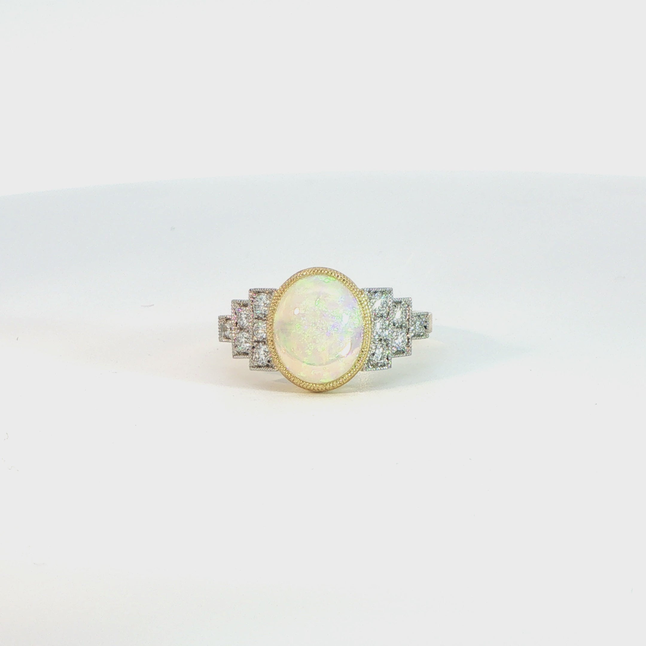 18 Carat Yellow Gold and Platinum Opal and Diamond Cocktail Ring