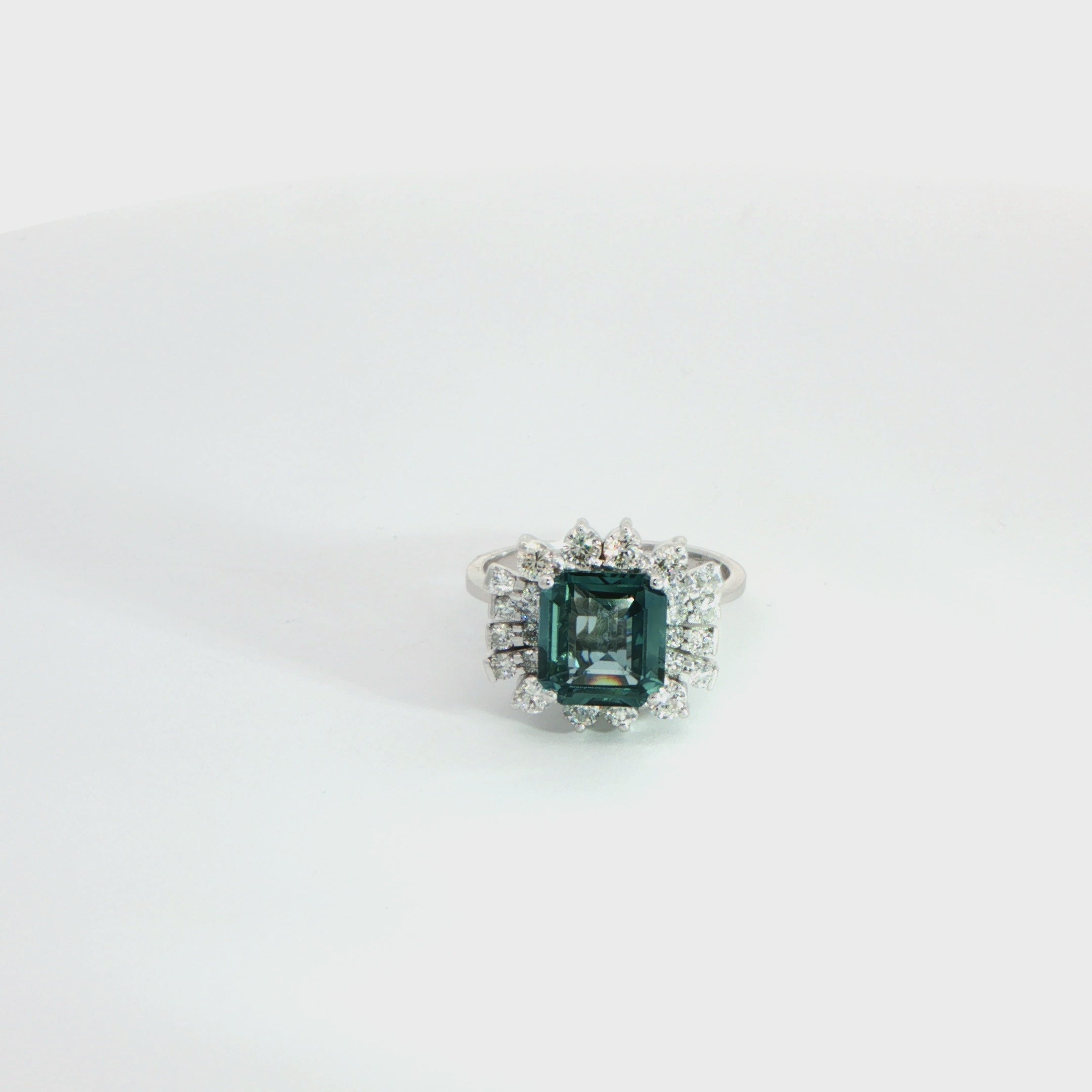 Platinum Teal Sapphire and Diamond Ring