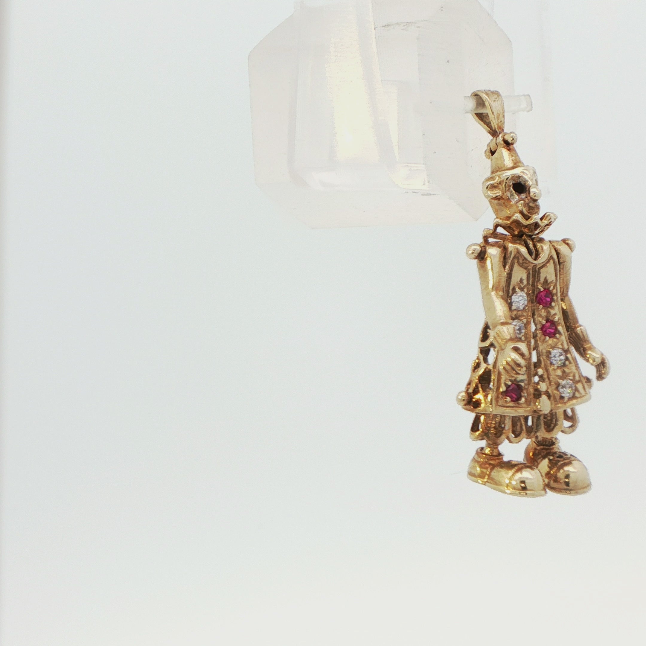 9 Carat Yellow Gold Ruby and Diamond Clown Pendant
