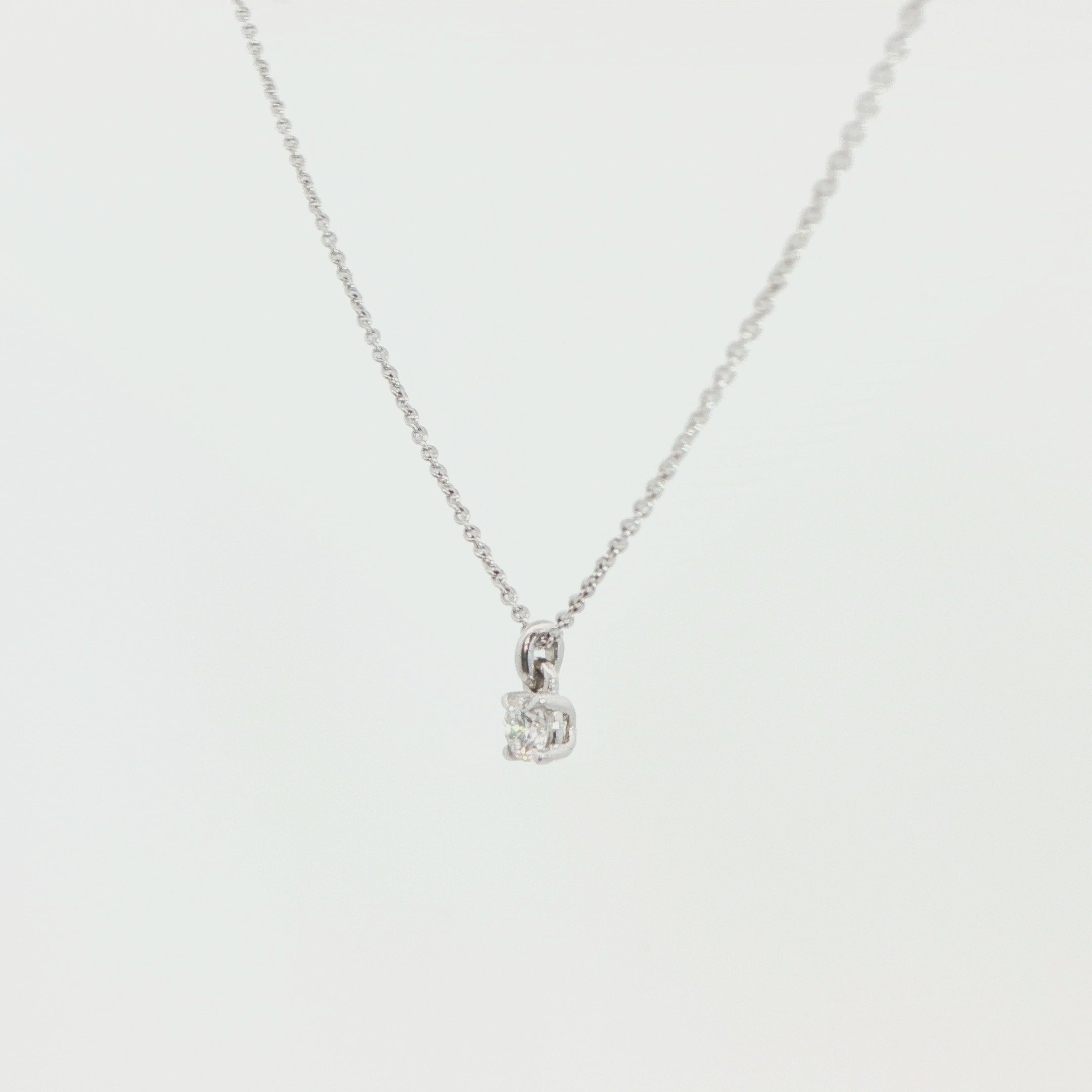 A subtle celebration of timeless elegance, this delicate pendant embodies understated luxury. Crafted in sleek 18ct white gold, it features a single 0.10ct round brilliant-cut diamond, held in a refined claw setting to maximise light return and sparkle. Its minimalist design allows the diamond to take centre stage—quietly radiant, effortlessly sophisticated.