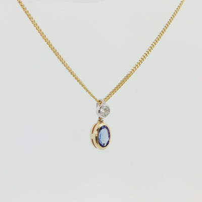 18 Carat Yellow and White Gold Tanzanite and Diamond Pendant on Chain
