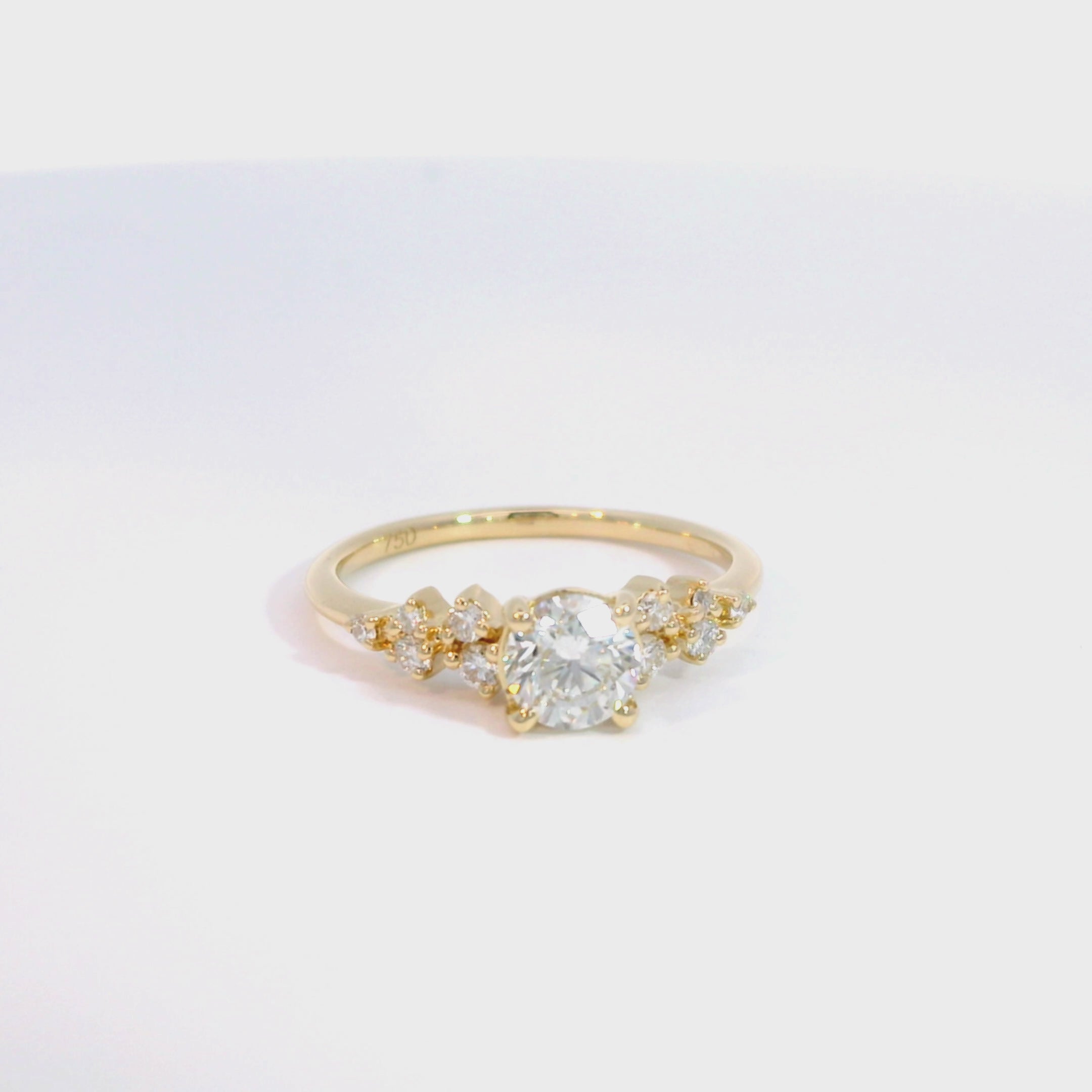 A graceful tribute to classic beauty, this exquisite ring is crafted in radiant 18ct yellow gold and designed to shimmer from every angle. At its heart lies a dazzling 0.71ct round brilliant-cut diamond, celebrated for its fire and clarity. Enhancing its brilliance, five smaller round brilliant-cut diamonds adorn each side of the centre stone, totalling approximately 0.17ct, creating a seamless flow of sparkle and sophistication.