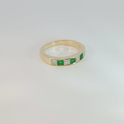 18 Carat Yellow Gold Emerald and Diamond Half Eternity Ring