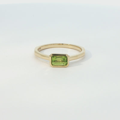 18 Carat Yellow Gold Emerald Cut Peridot Ring