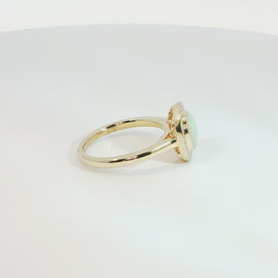 18 Carat Yellow Gold Opal and Diamond Halo Ring