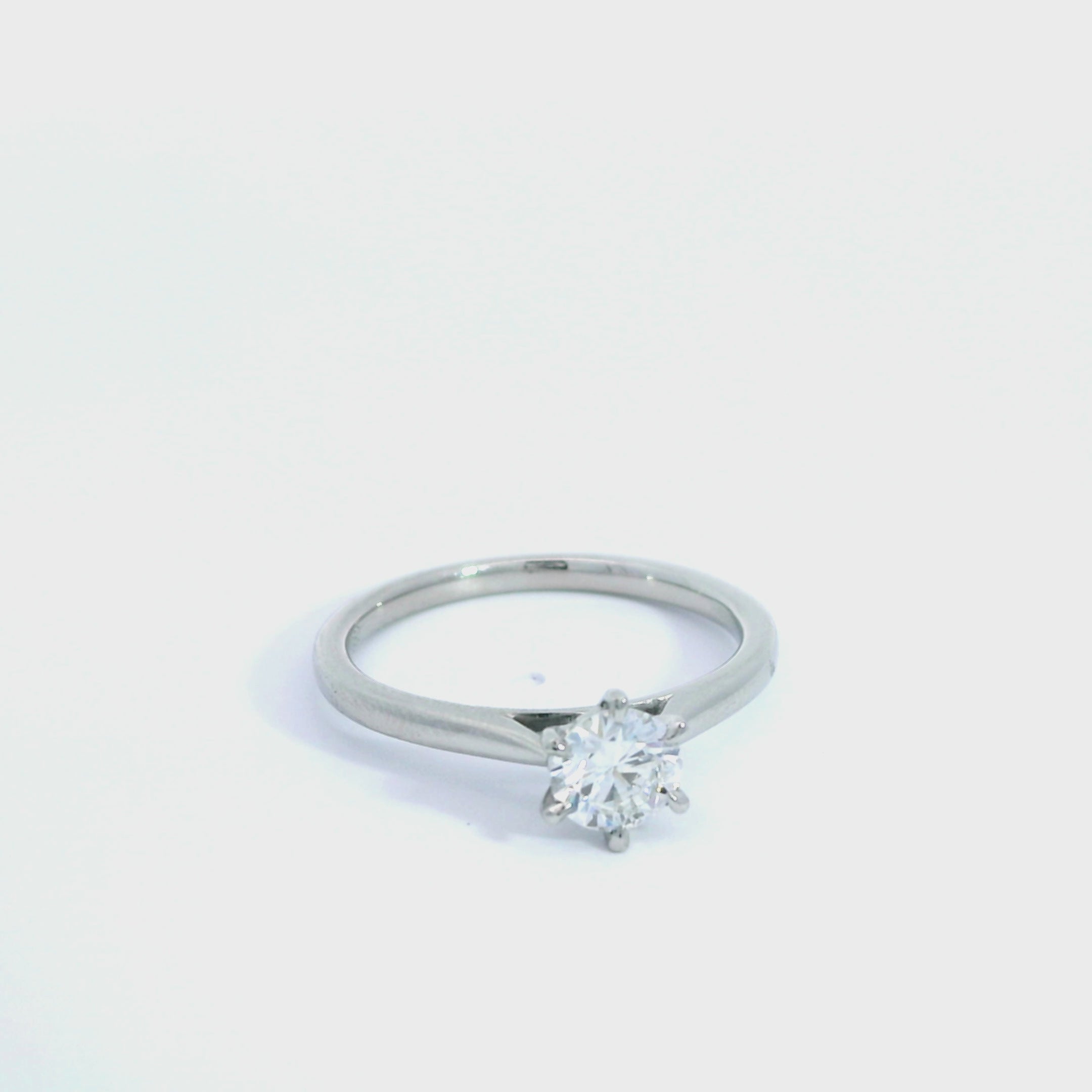 A timeless symbol of love and simplicity, this elegant platinum solitaire ring showcases the enduring beauty of a single diamond. At its centre sits a dazzling 0.50ct round brilliant-cut diamond, securely held in a refined six-claw setting that allows light to dance effortlessly through every facet.