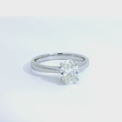 A timeless symbol of elegance and devotion, this exquisite diamond solitaire ring captures the essence of refined simplicity. Expertly crafted in platinum, it features a breathtaking 1.03ct oval-cut diamond, GIA certificated and celebrated for its brilliant sparkle and graceful silhouette. The diamond, graded H in colour and SI2 in clarity, is securely held in a classic claw setting that allows light to flow freely through the stone, enhancing its natural radiance.